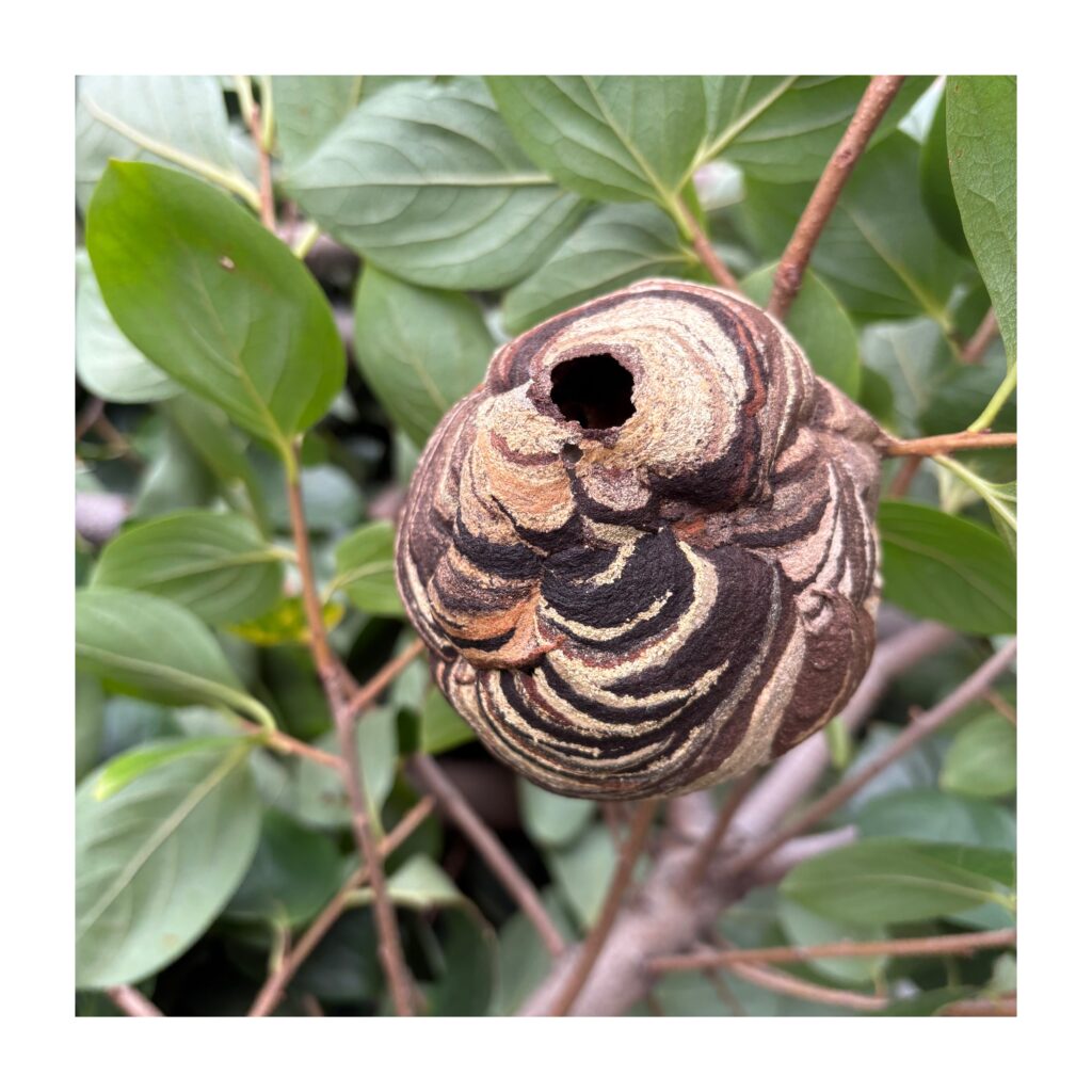 生い茂った柿の木の中には、キイロスズメバチの巣が、危険でした。