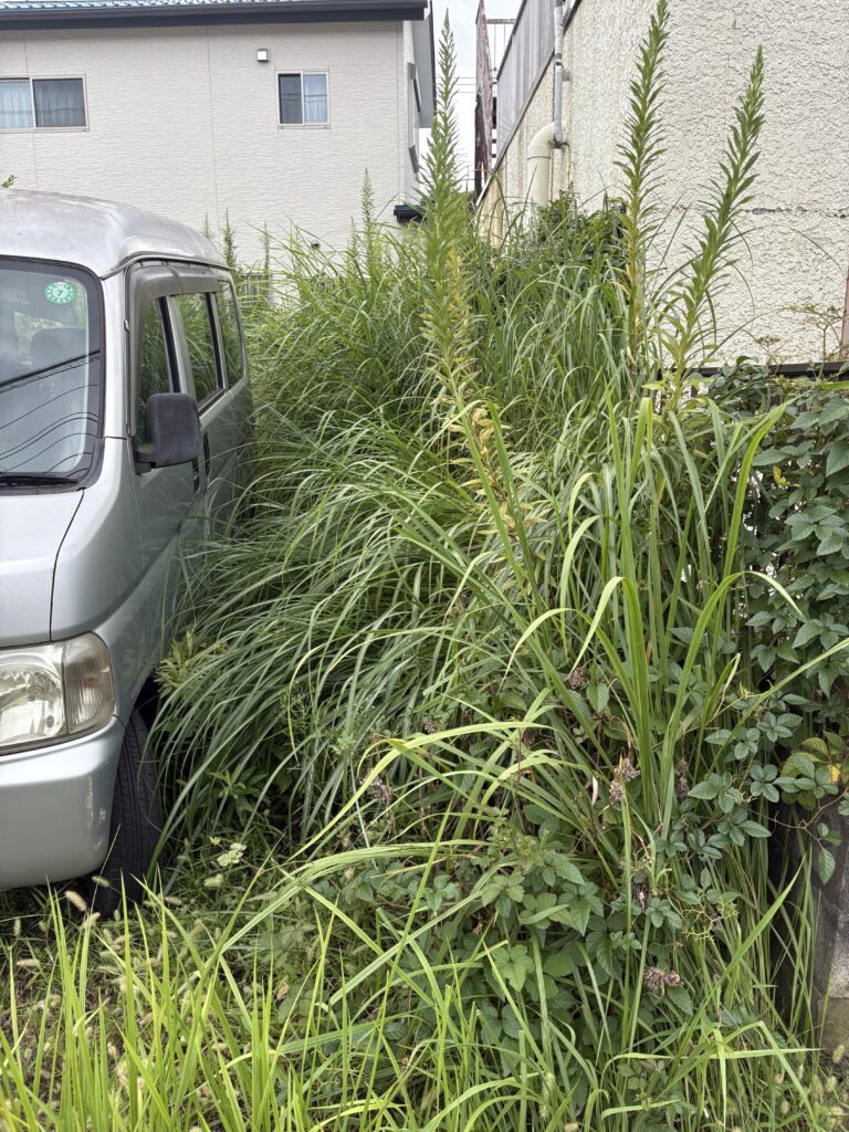 毎年決まった時期に空き駐車場の草刈り御依頼頂いております。リピートのお客様、大変有り難いです。 2025.10.11 2メートル越えの雑草たちです。 草刈りで綺麗になりました。 今後の空き地の利用方法などもご相談承っております。