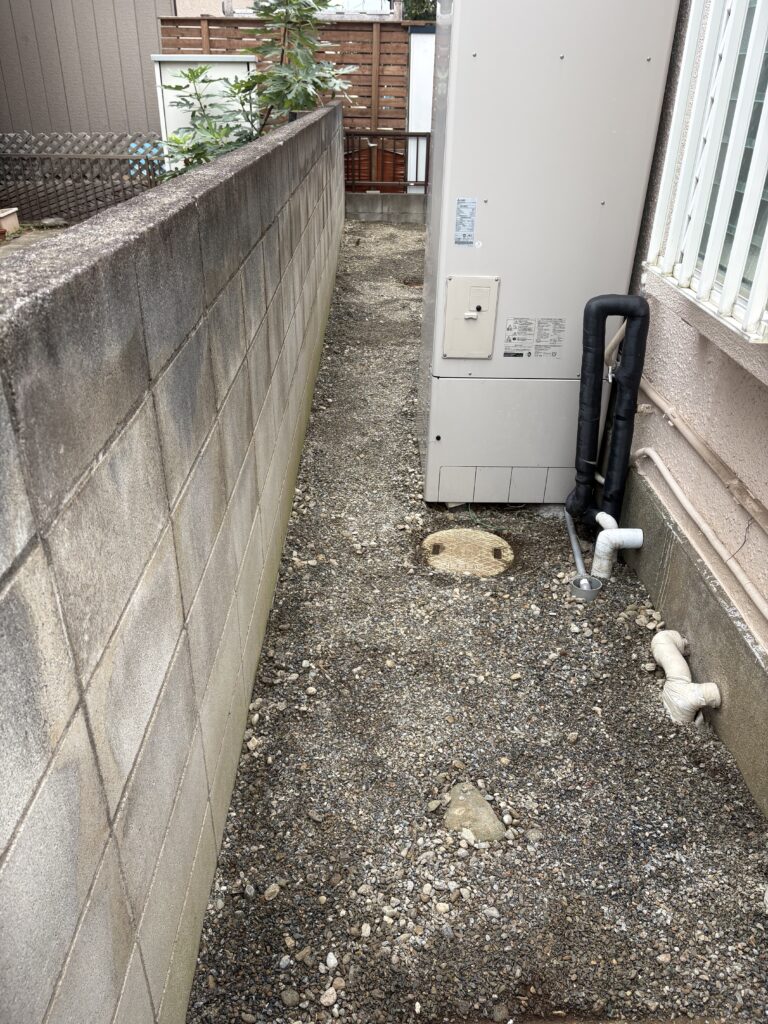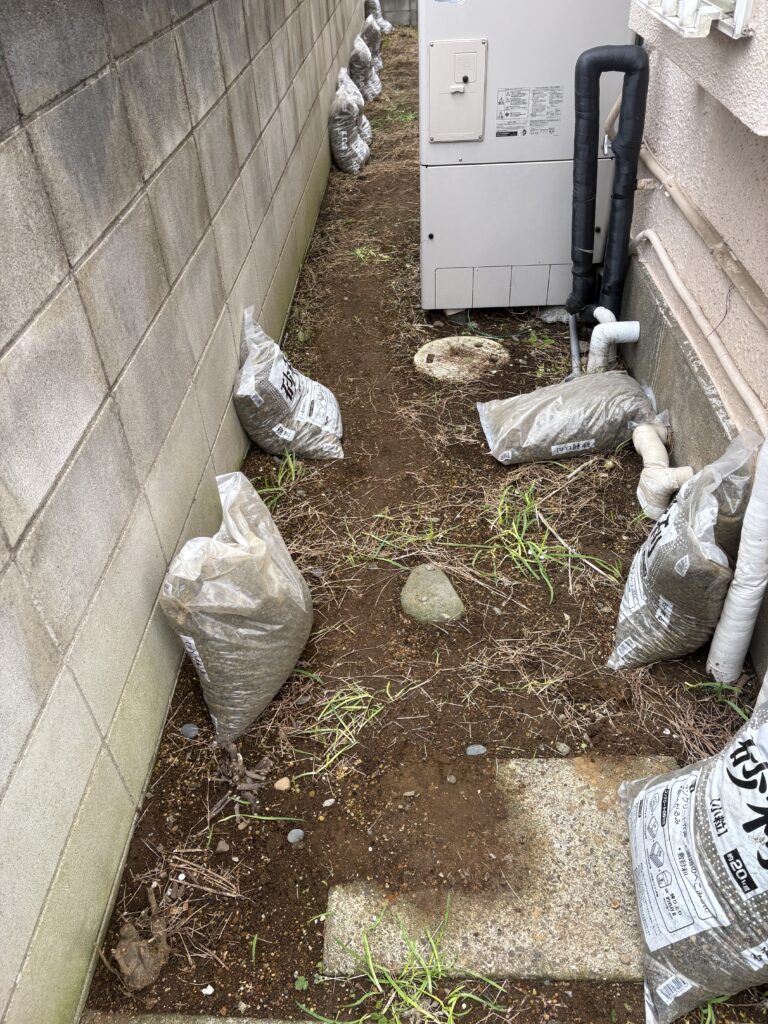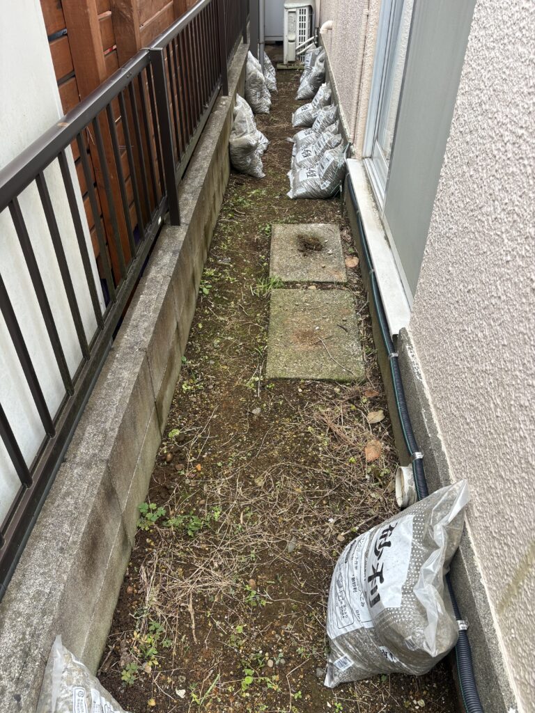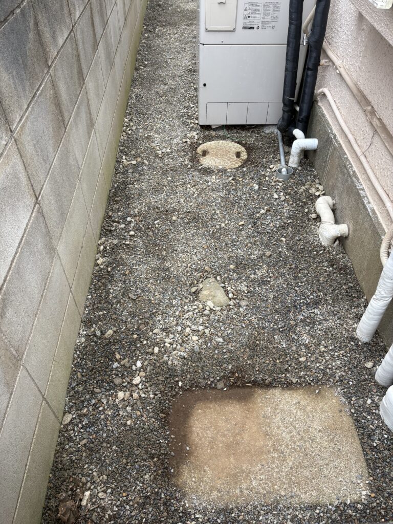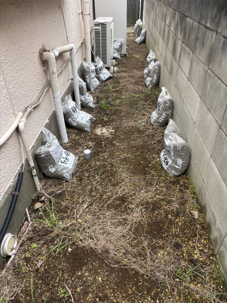 BEFORE 冬に向かって雑草も生えづらくなりました。除草剤で枯らしてからの砂利敷で雑草対策と防犯対策はいかがでしょうか?