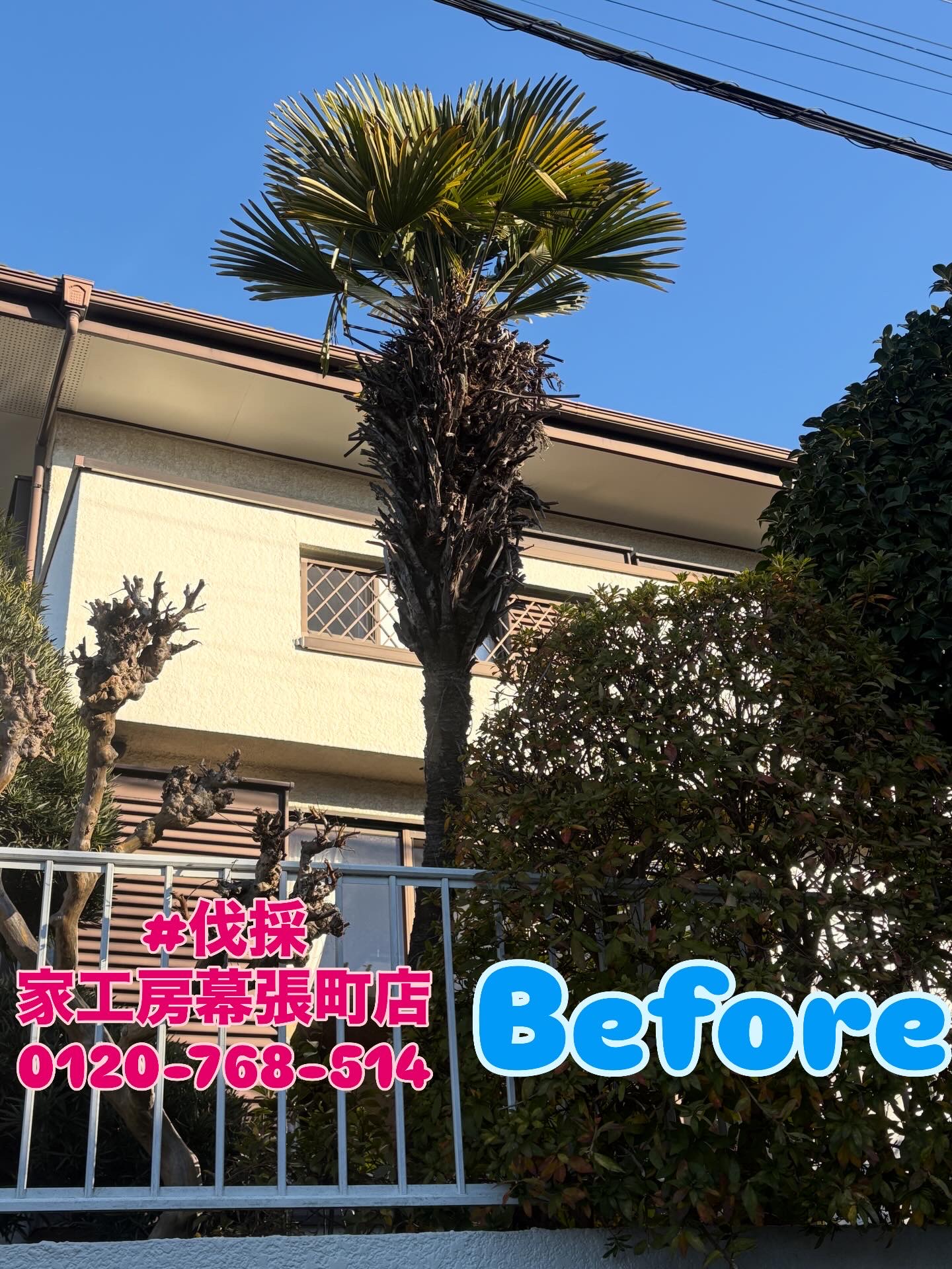 隣の敷地に入ってしまった木々。高くなり過ぎた木の伐採、剪定は家工房幕張町店にお任せください。長年手付けず、巨大化したキンモクセイはご希望の高さとボリューム感に致しました。椰子の木は要らないとのことで高所作業車を導入して安 […]